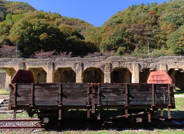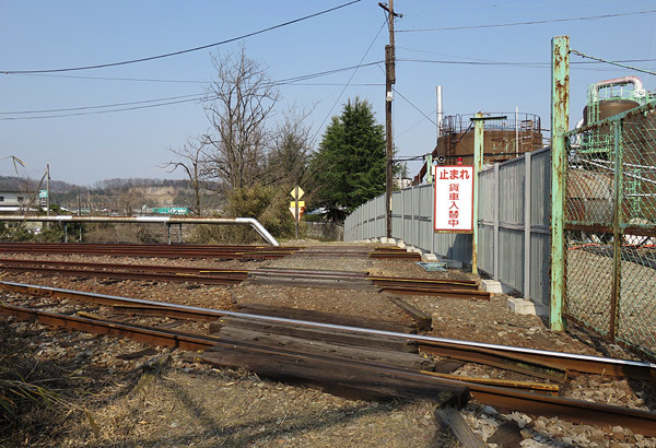 朱色に塗られたタンク車タキ1200と無蓋車トキ25000の終着駅。様々な貨車が姿を消して、安中駅には線路だけが残されたまま。